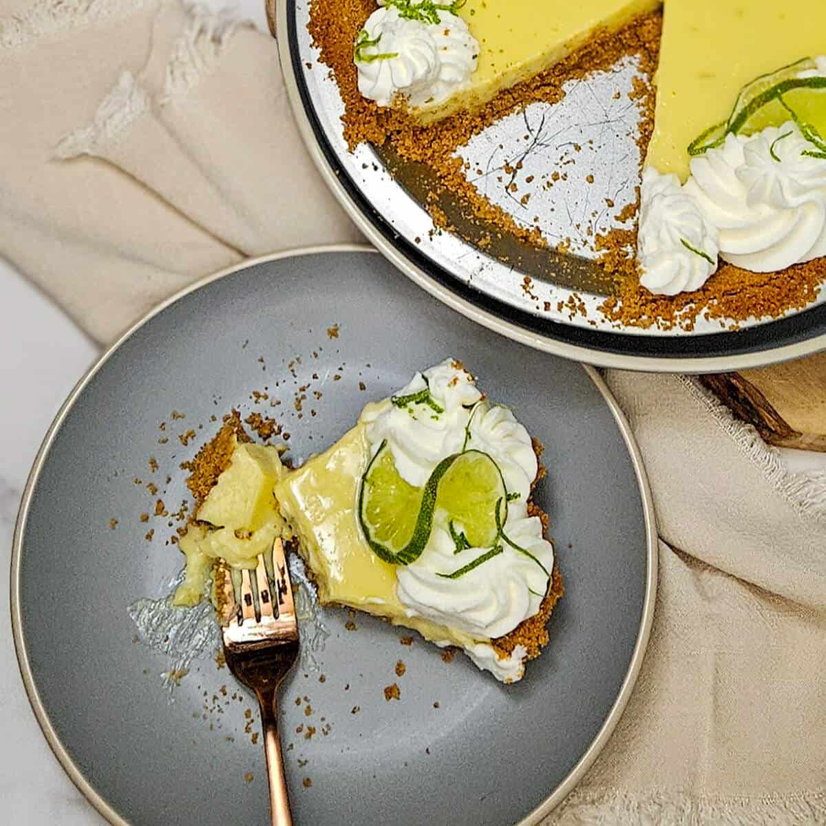 - Fill the pastry bag fitted with a star tip and pipe whipped cream on the cooled pie. Use sliced lime and lime zest to garnish, slice and enjoy!